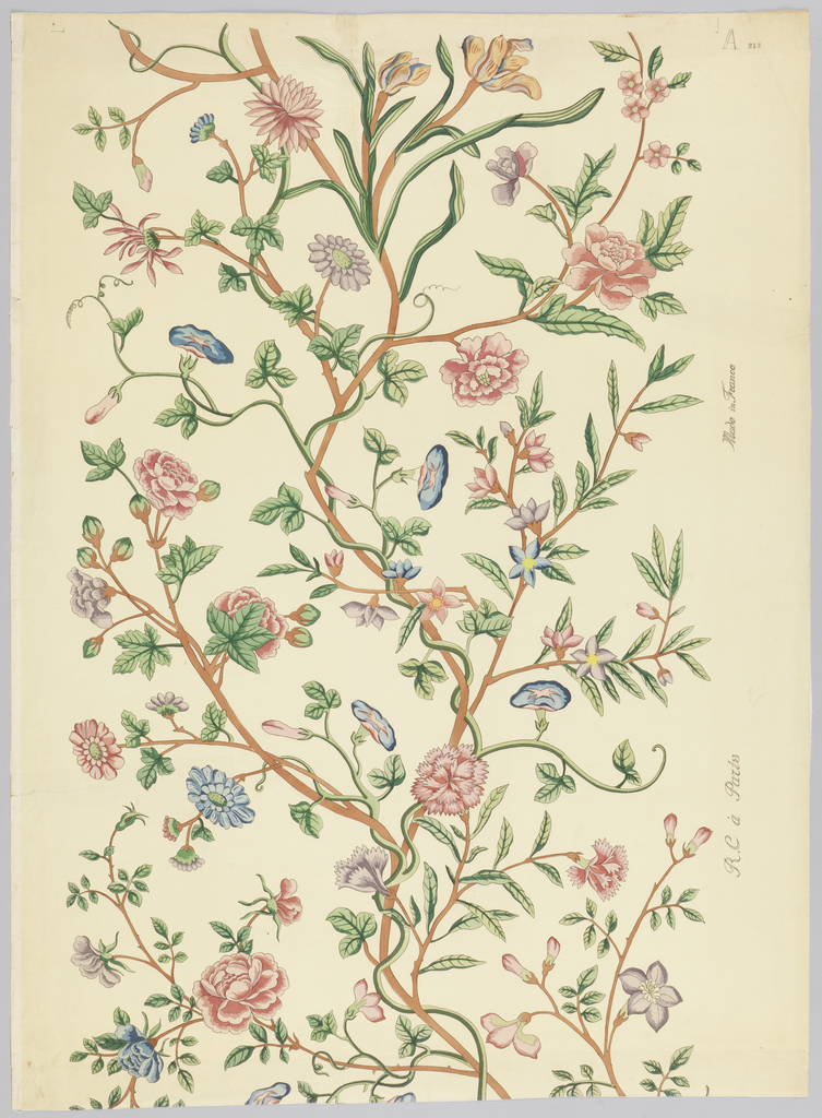 Sidewall, Carnation; Manufactured by Nancy McClelland (American, b. 1877–1959); France; block-printed paper; 103 x 76 cm (40 9/16 x 29 15/16 in.); Gift of Mount Vernon Ladies' Association; 1946-54-7