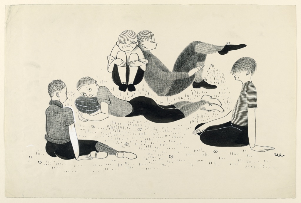 Drawing, Design for a Spot for The New Yorker; Designed by Christina Malman (American, b. England, 1911–1959); Client: The New Yorker Magazine; USA; brush and ink, white gouache on paper; 32.2 × 48.4 cm (12 11/16 × 19 1/16 in.); Museum purchase through gift of Charles W. Gould; 1947-115-10