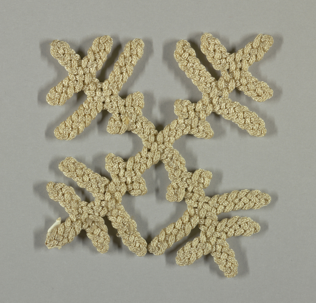 This is a Ornament . It was designed by Isidor Weinberg and made by Isidor Weinberg. It is dated 1925–40 and we acquired it in 1947. Its medium is rayon and its technique is interlaced. It is a part of the Textiles department.