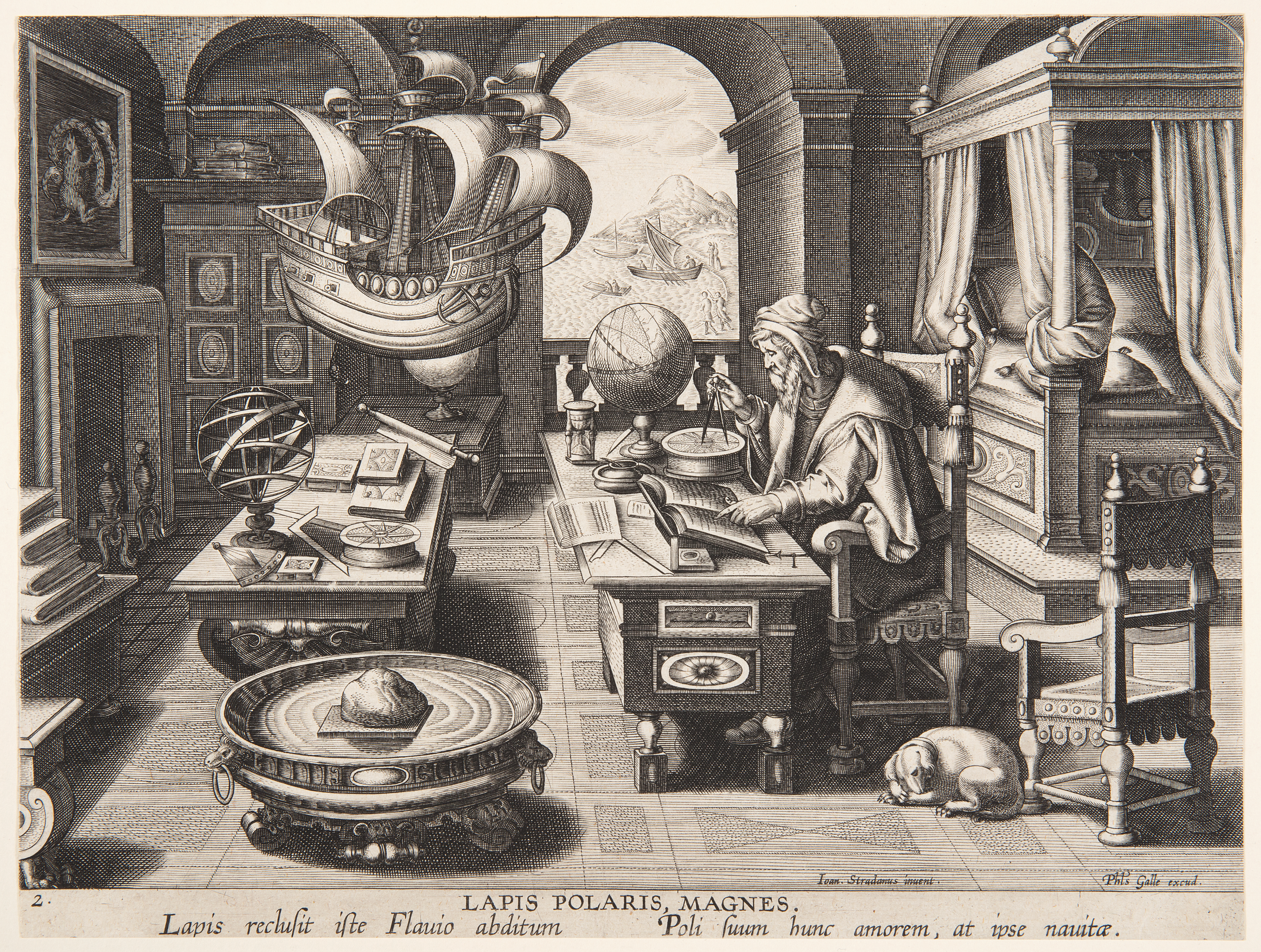 Print, Lapis Polaris Magnes (Invention of the Compass), plate 2 of the Nova Reperta (New Inventions for Modern Times)