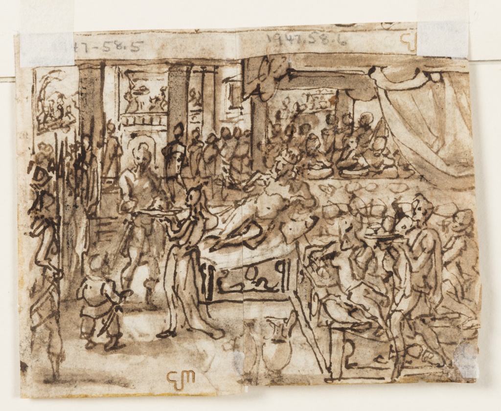 This is a Drawing. It was created by Jan van der Straet, called Stradanus and published by Philips Galle and Theodor Galle and engraved by Cornelis Galle I. It is dated ca. 1580-1605 and we acquired it in 1947. Its medium is recto: pen and brown ink, brush and brown wash over black chalk on laid paper verso: pen and brown ink, brush and brown and black washes over black chalk on laid paper . It is a part of the Drawings, Prints, and Graphic Design department.