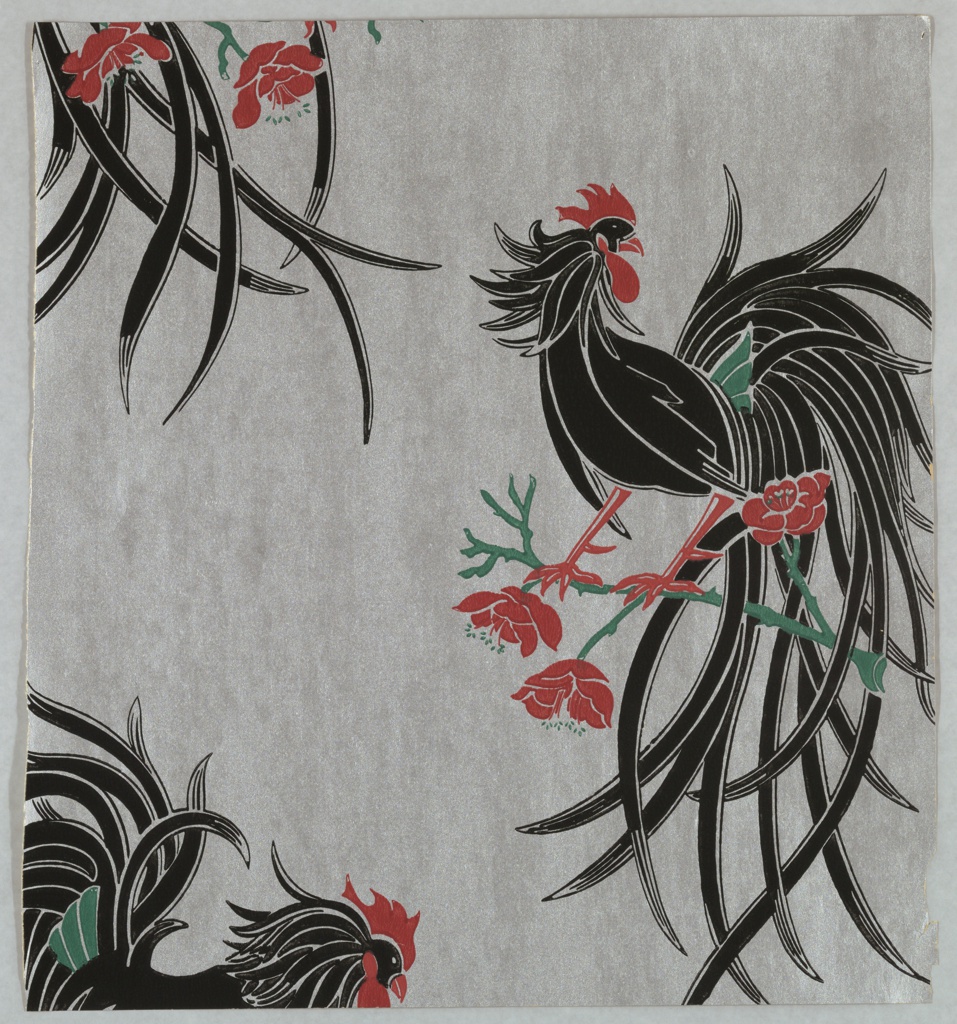 Sidewall - Sample, Chanticleer; Kayser & Allman; Manufactured by United Wallpaper, Inc.; USA; machine-printed paper; 47 x 43 cm (18 1/2 x 16 15/16 in.); Gift of Henry H. Allman; 1947-81-8
