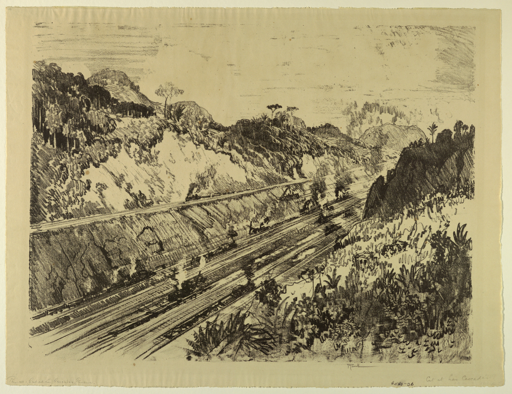 Inscribed in graphite, lower left corner: "Pennell. Cut at Las Cascadas. Panama"; in graphite, lower right corner: "Cut at Las Cascadas"; in black crayon, lower right: "#440-36"