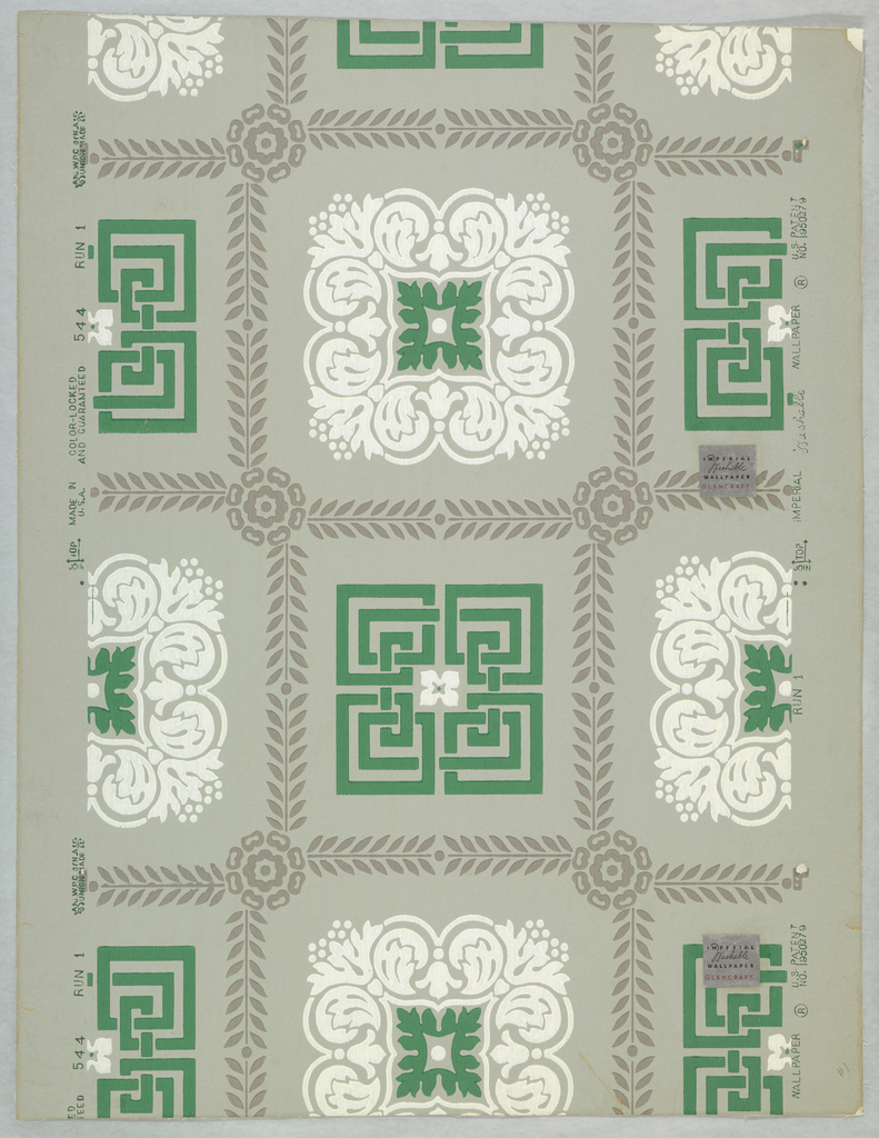 This is a Sidewall. It is dated 1948 and we acquired it in 1948. Its medium is machine-printed. It is a part of the Wallcoverings department.
