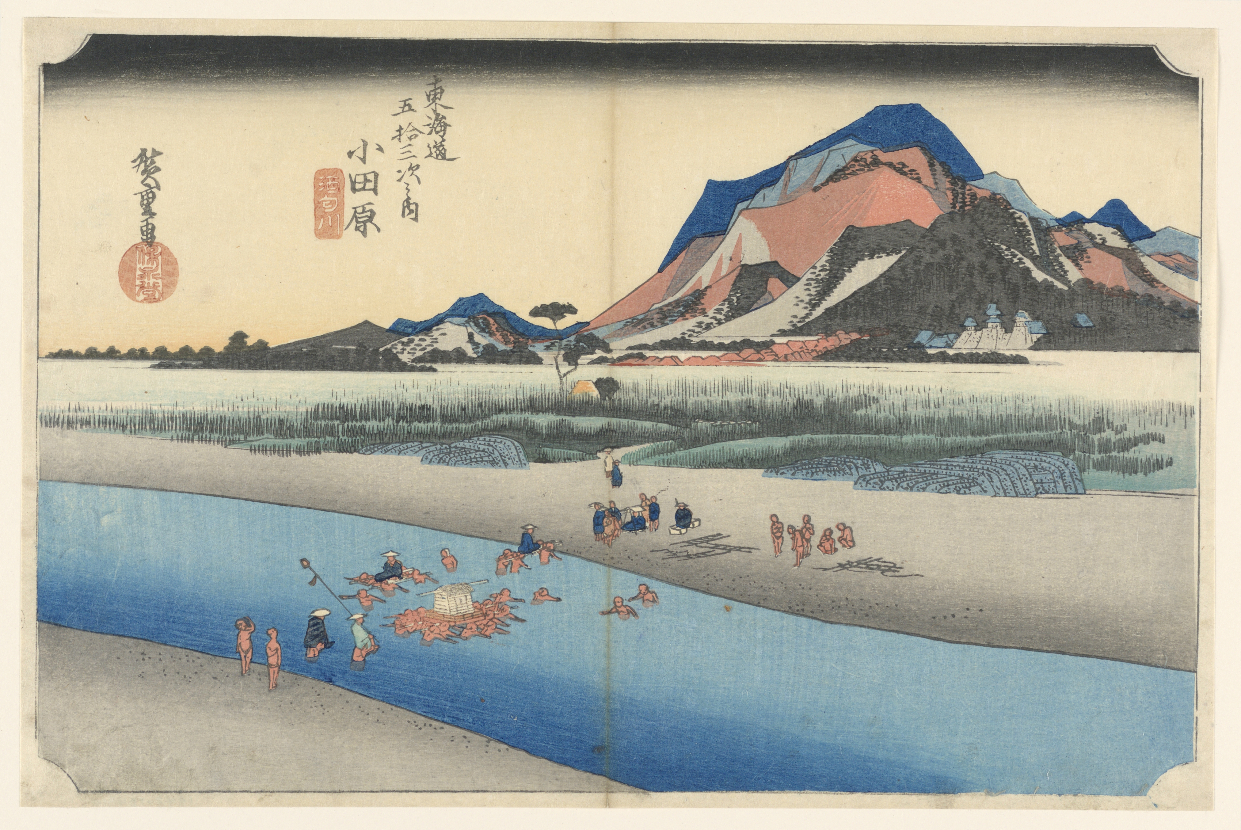 Print, Fording the Sakawa River (Odawara), in The Fifty-Three Stations of the Tokaido Road (Tokaido Gojusan Tsugi-no Uchi)