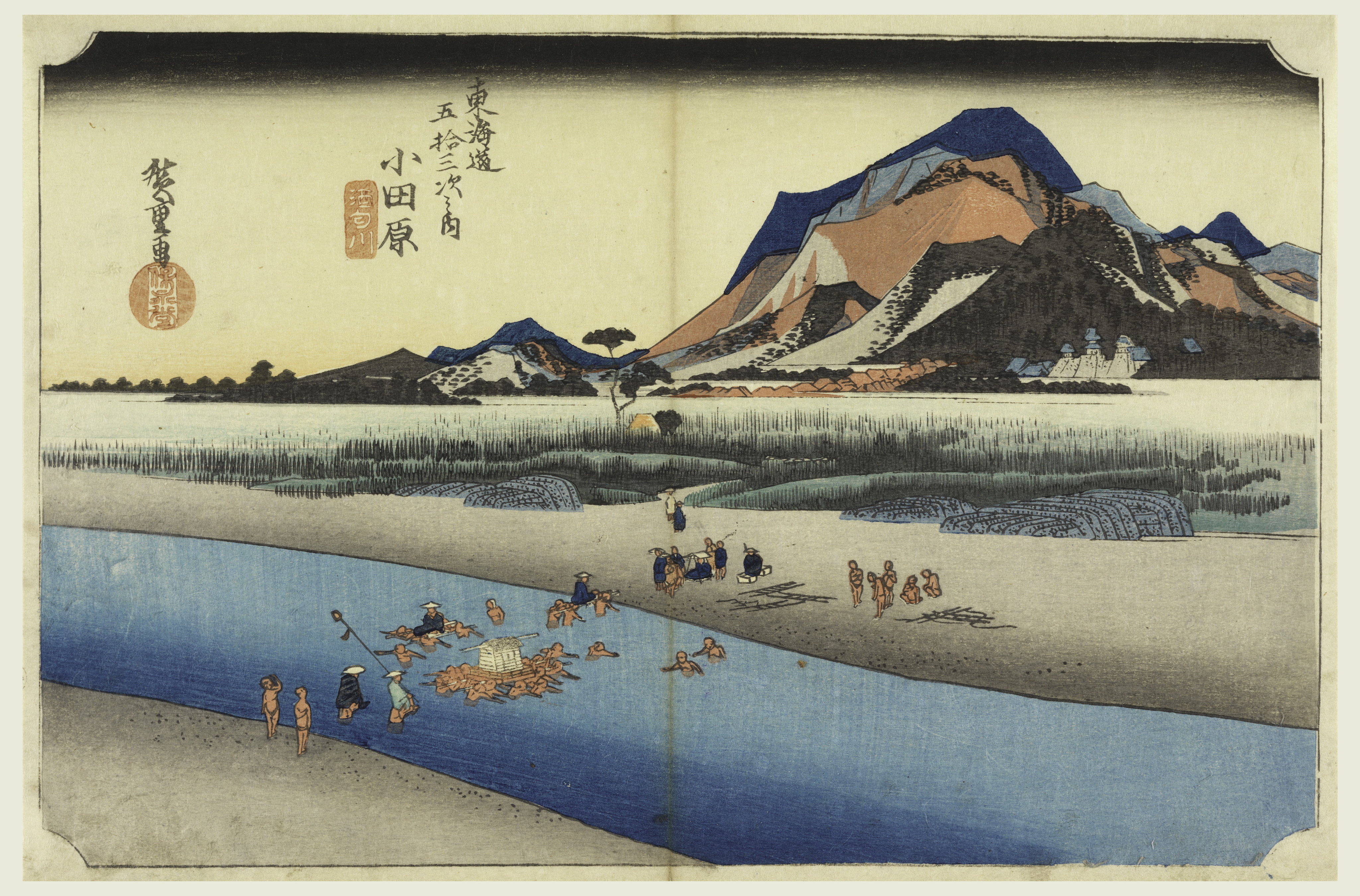 <ref name=CH>{{cite web |url=https://www-4.collection.cooperhewitt.org/objects/18608815/ |title=Print, Fording the Sakawa River (Odawara), in The Fifty-Three Stations of the Tokaido Road (Tokaido Gojusan Tsugi-no Uchi) |author=Cooper Hewitt, Smithsonian Design Museum |accessdate=19 December 2025 |publisher=Smithsonian Institution}}</ref>