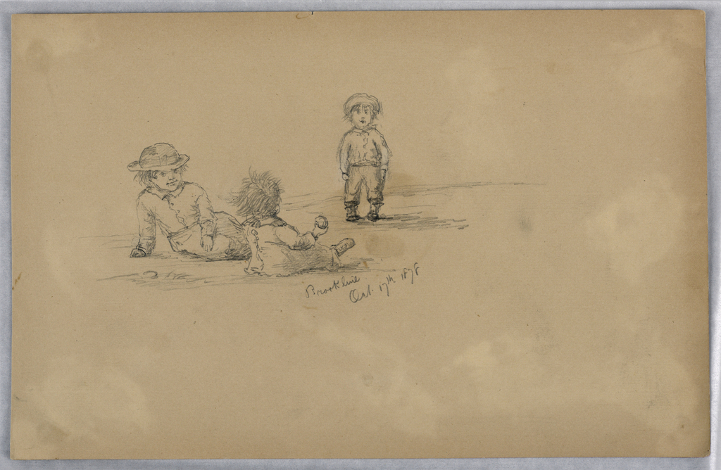 Drawing, Sketch of Three Children; Arnold William Brunner (American, 1857–1925); USA; graphite on light brown paper; 17.4 × 27 cm (6 7/8 × 10 5/8 in.); Gift of Mrs. Arnold W. Brunner; 1948-47-275