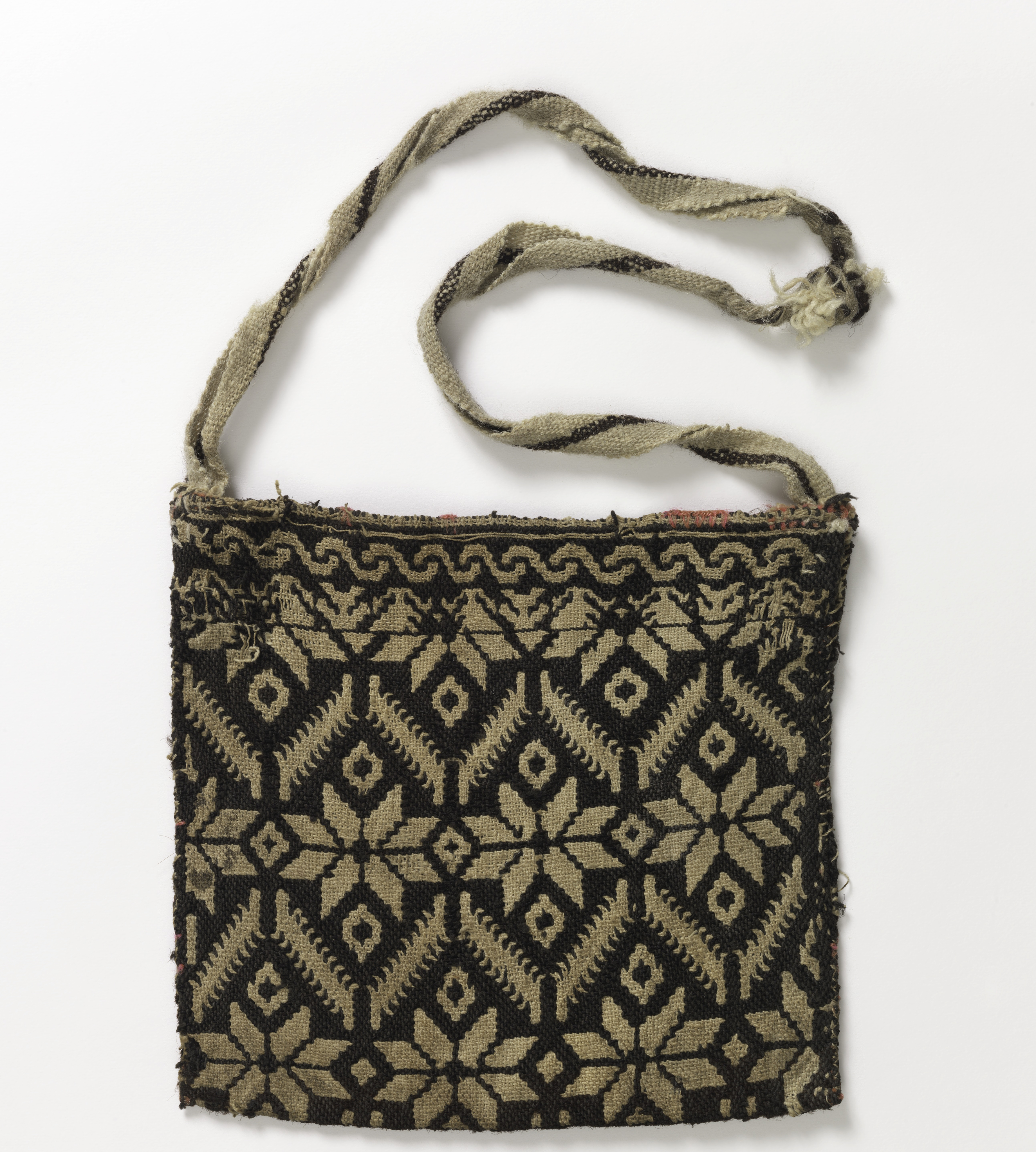 This is a Bag. It is dated probably 19th century and we acquired it in 1949. Its medium is wool and its technique is doublecloth. It is a part of the Textiles department.