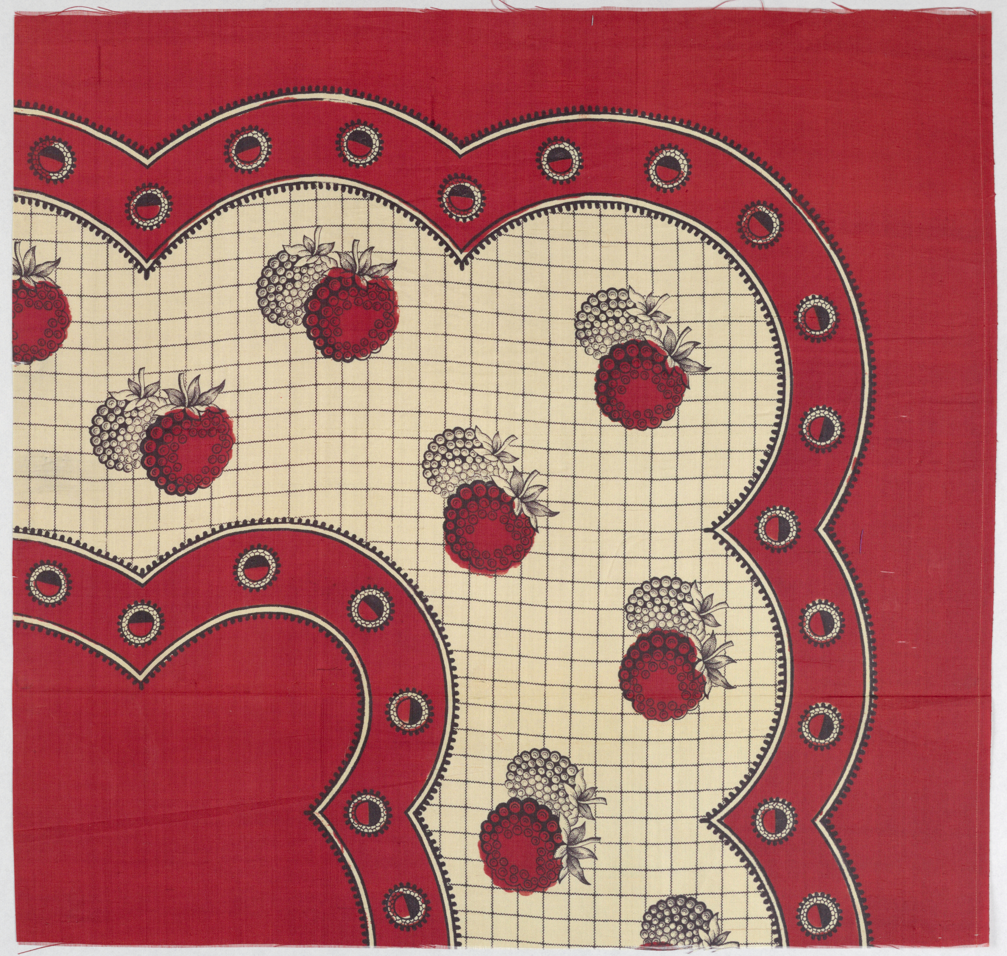 This is a Scarf sample. It is dated mid-19th century and we acquired it in 1981. Its medium is silk and its technique is printed on plain weave. It is a part of the Textiles department.