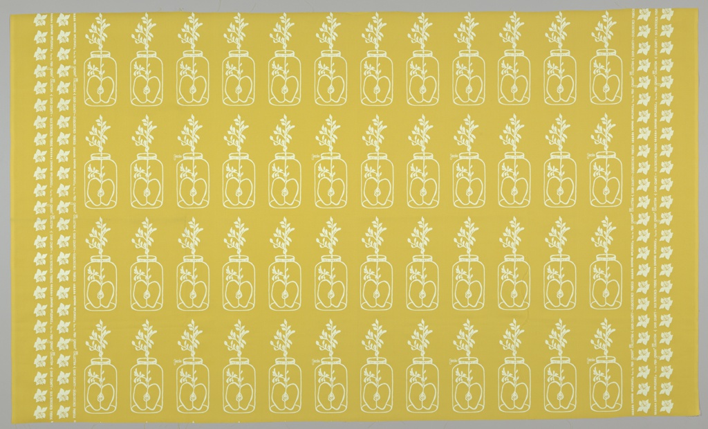 Textile, Growing Applesauce; Designed by Carol Gresko Bacigalupo (American, b. 1942); Manufactured by Gresko & Co.; USA; 65% polyester, 35% cotton; H x W: 91.1 × 152.4 cm (35 7/8 × 60 in.) Repeat H: 30.5 cm (12 in.); 1981-2-3