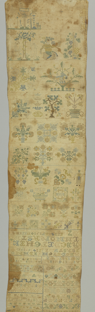 Sampler (Germany); silk embroidery on linen foundation; H x W: 108 x 24.8 cm (42 1/2 x 9 3/4 in.); Bequest of Gertrude M. Oppenheimer; 1981-28-331