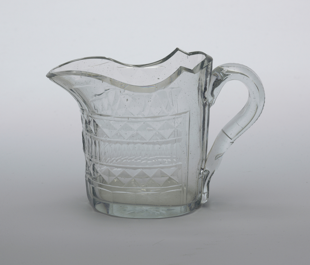 This is a Jug. It is dated ca. 1800–10 and we acquired it in 1986. Its medium is glass. It is a part of the Product Design and Decorative Arts department.