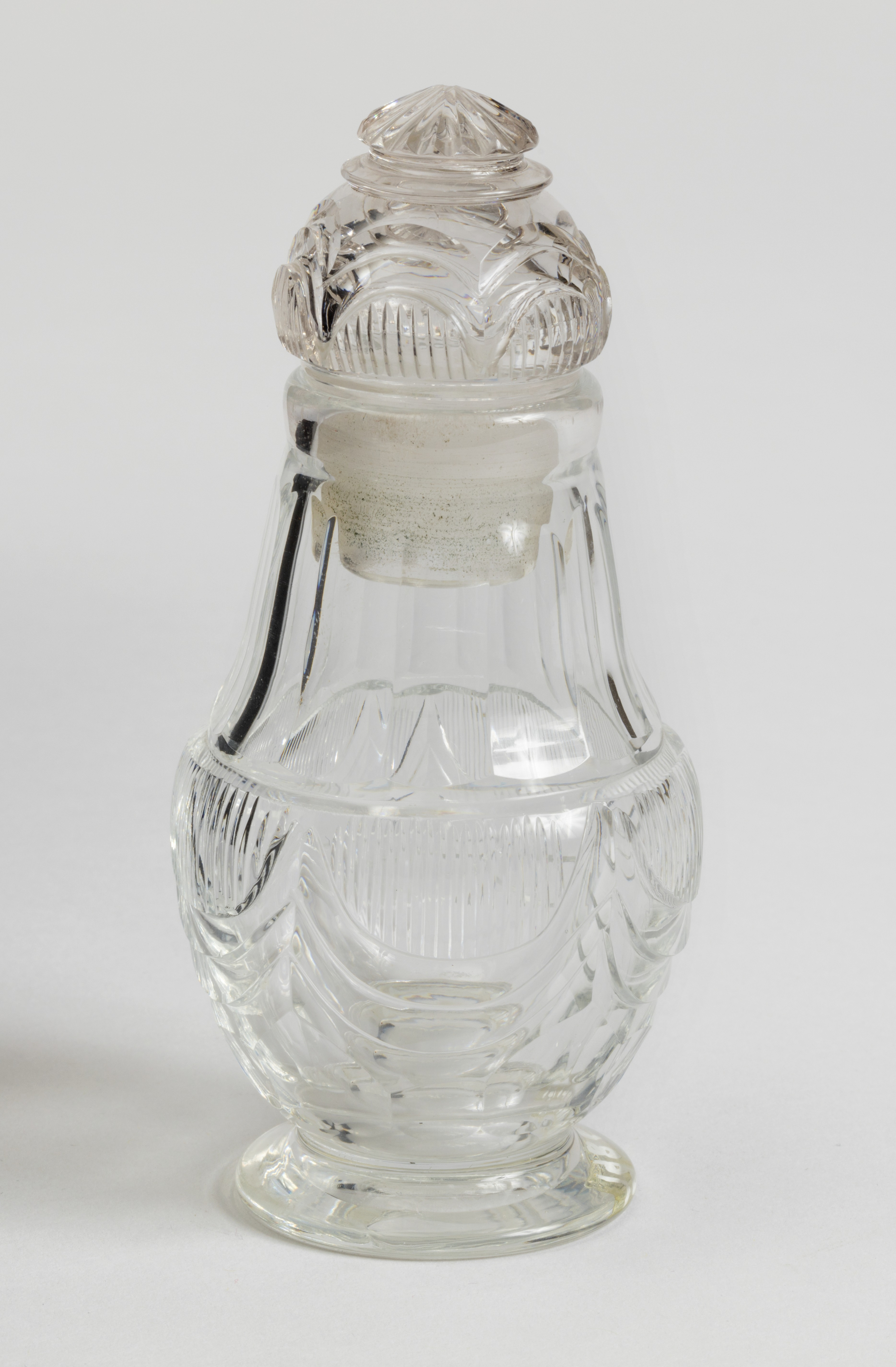 This is a cruet. It is dated ca. 1810 and we acquired it in 1986. Its medium is glass, copper, silver. It is a part of the Product Design and Decorative Arts department.