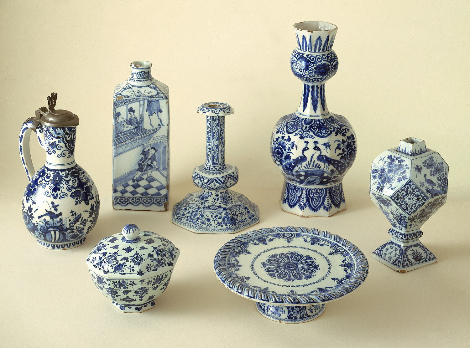 Among the most prized items brought back in trade by the Dutch East India Company in the 17th century was Chinese blue-and-white porcelain. Quick to try to replicate the look, the town of Delft had so many factories that specialized in blue-and-white earthenware that the resulting production became known as Delftware.