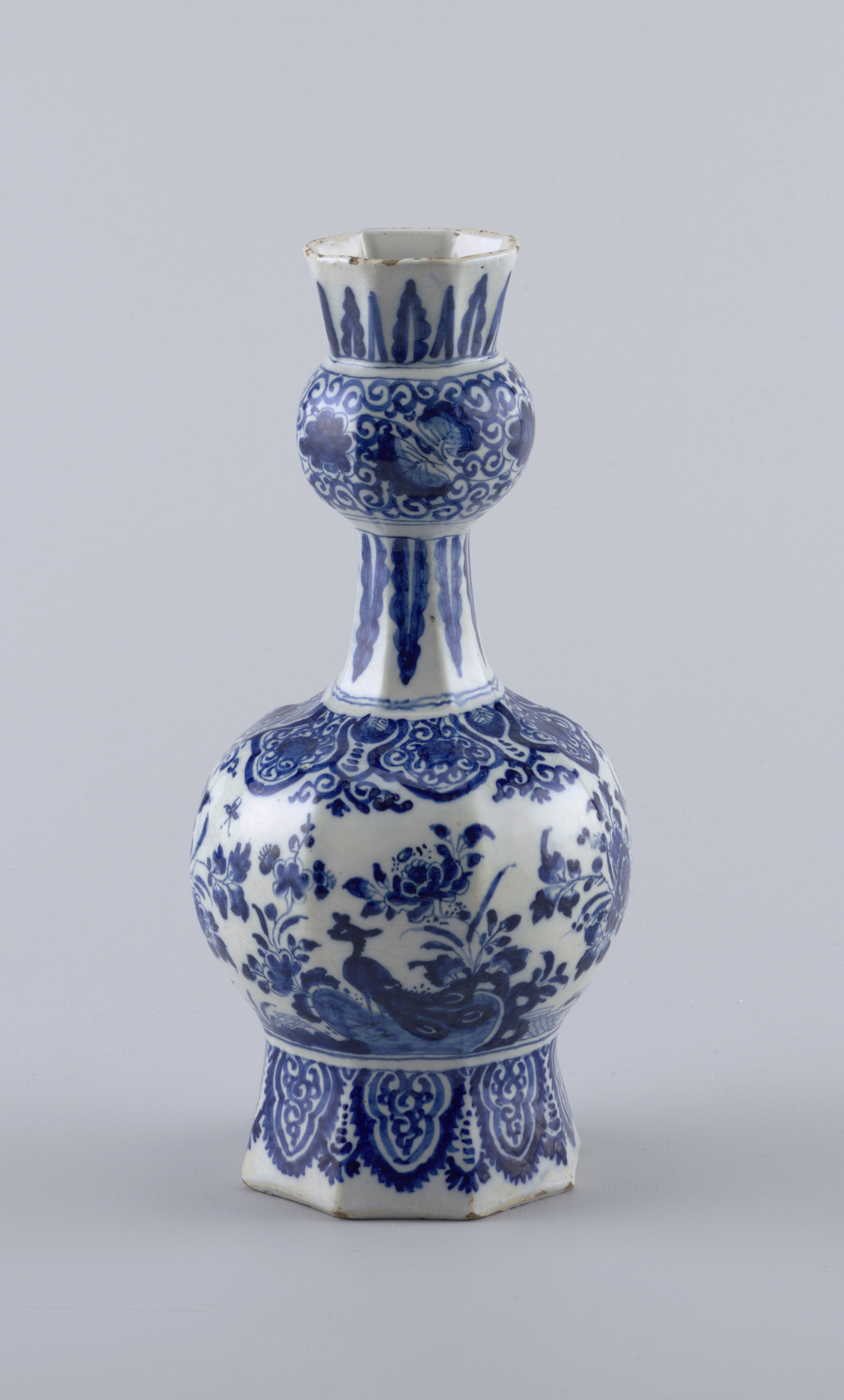 Vase (Netherlands); tin-glazed earthenware; 32.5 x 15 x 15 cm (12 13/16 x 5 7/8 x 5 7/8 in.); Bequest of Walter Phelps Warren; 1986-61-34
