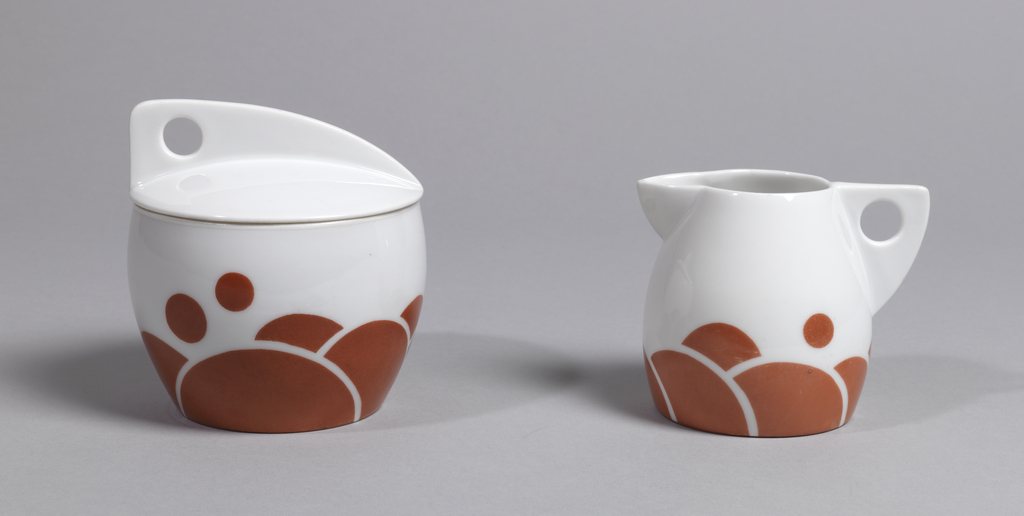 Sugar Bowl And Lid (Austria); Designed by Jutta Sika (Austrian, 1877 - 1964); Produced by Schule Professor Koloman Moser; Manufactured by Wiener Porzellan Josef Böck (Austria); Made for Koloman Moser (Austrian, 1868–1918); enameled porcelain; H x diam.: 11 x 10.5 cm (4 5/16 x 4 1/8 in.); Museum purchase from Charles E. Sampson Memorial Fund; 1986-83-2-a,b