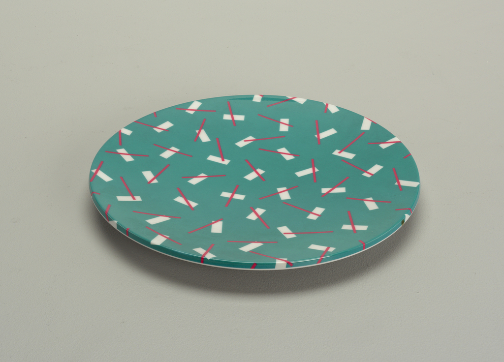 This is a Salad plate. It was designed by John Lonczak, Tom Dair, Tucker Viemeister, Davin Stowell, Annie Breckenfeld, Linda Celantano and Brent Markee and manufactured by Copco and firm: Smart Design, Inc.. It is dated 1985 and we acquired it in 1987. Its medium is melamine plastic. It is a part of the Product Design and Decorative Arts department.