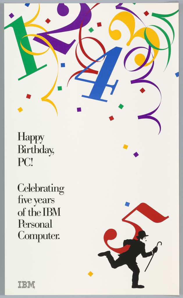 Poster, Happy Birthday, for I.B.M. Corporation; Client: IBM (United States); USA; offset lithograph on white paper; H x W: 91.7 x 54.8 cm (36 1/8 x 21 9/16 in.); 1987-2-2