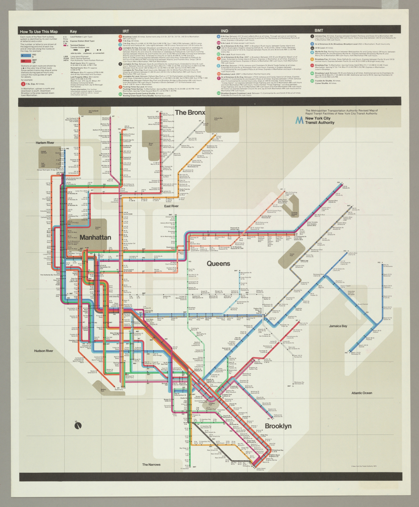 In his 1974 New York subway map, Massimo Vignelli used an eight-color palette to communicate the complex system, assigning each line a specific color. Critics found the diagrammatic plan too abstract, but many aspects of the design, including the color-coding of the lines, were retained in future iterations.