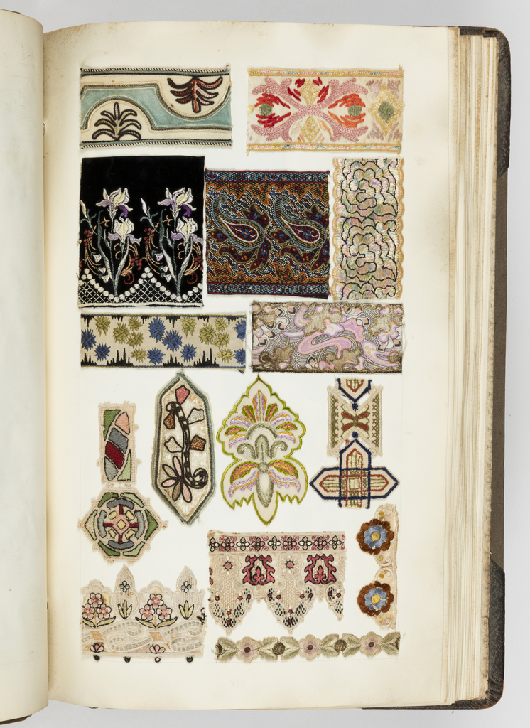 This is a Sample book of embroidery trimmings. It is dated 1900–10 and we acquired it in 1987. It is a part of the Textiles department.