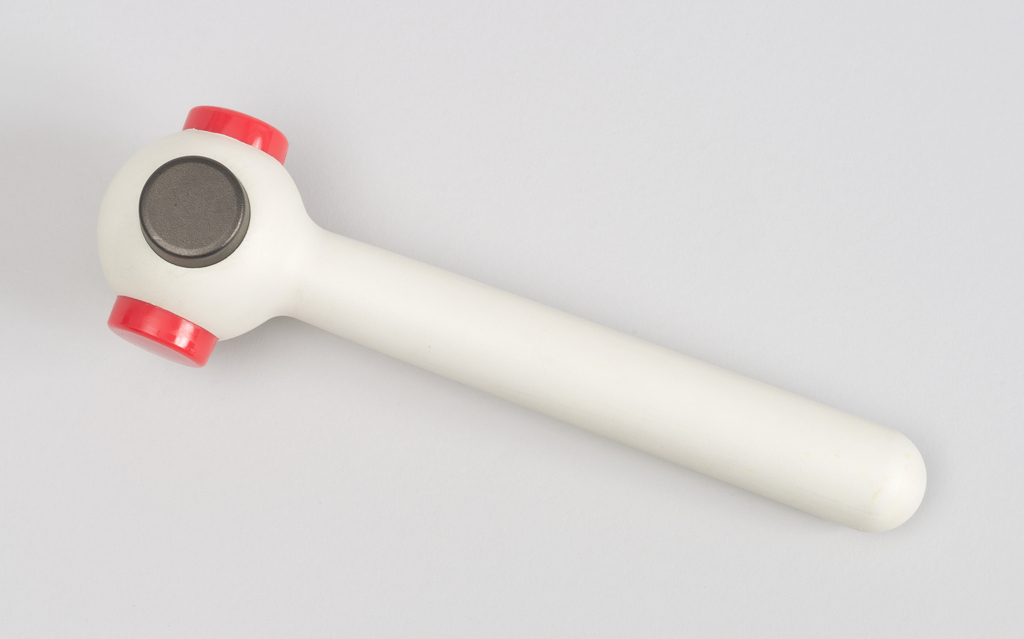 This is a Hammer. We acquired it in 1987. Its medium is plastic. It is a part of the Product Design and Decorative Arts department.