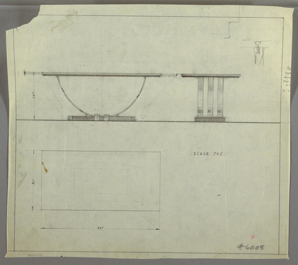 Drawing, Table; Office of Donald Deskey Associates, Donald Deskey (American, 1894–1989); USA; graphite on tracing paper; 32.4 x 36.5 cm (12 3/4 x 14 3/8 in.); Gift of Donald Deskey; 1988-101-1027