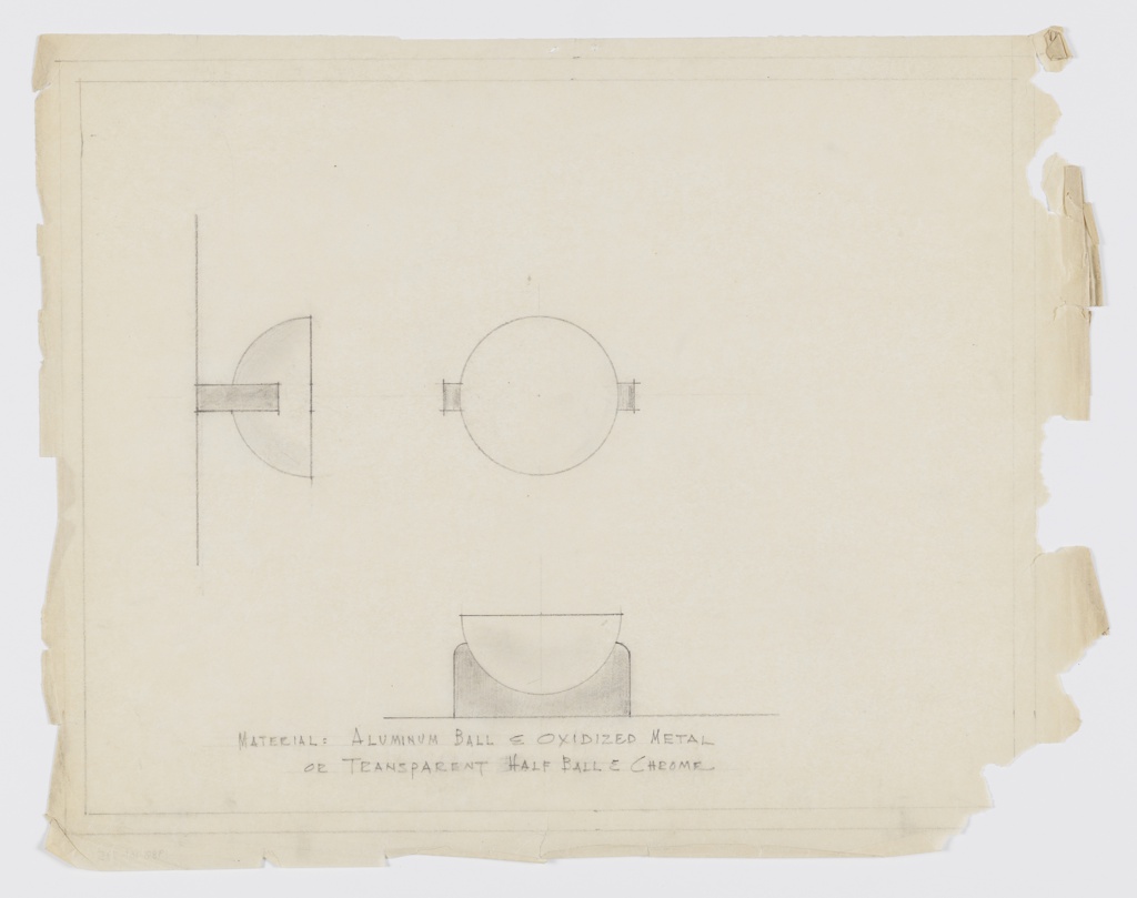 Inscribed in graphite, lower center: MATERIAL: ALUMINUM BALL & OXIDIZED METAL / OR TRANSPARENT HALF BALL & CHROME