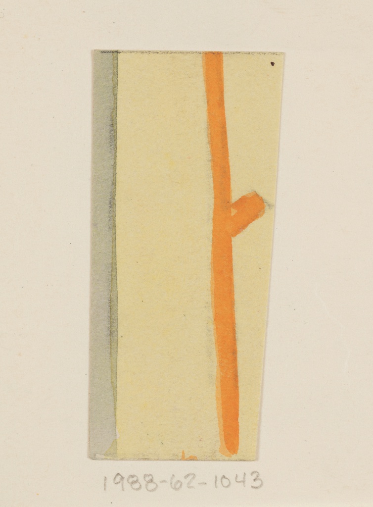 Drawing, Textile Design: Eiland (Isle); Designed by Felice Rix-Ueno (Austrian, 1893–1967, active Japan 1935–1967); Made for Wiener Werkstätte (Austria); brush and gouache on paper; 5.1 × 1.9 cm (2 in. × 3/4 in.) Mat: 31.8 × 45.6 cm (12 1/2 × 17 15/16 in.); Museum purchase from Smithsonian Collections Acquisition and Decorative Arts Association Acquisition Funds; 1988-62-1043