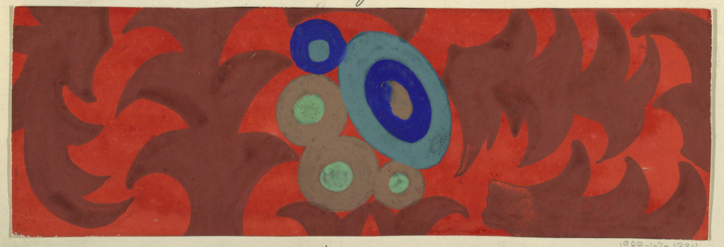 Drawing, Textile Design: Carmen; Designed by Eduard Josef Wimmer-Wisgrill (Austrian, 1882 - 1961); Made for Wiener Werkstätte (Austria); brush and gouache on paper; 5.7 × 21 cm (2 1/4 × 8 1/4 in.) Mat: 30.5 × 45.1 cm (12 × 17 3/4 in.); Museum purchase from Smithsonian Collections Acquisition and Decorative Arts Association Acquisition Funds; 1988-62-1334