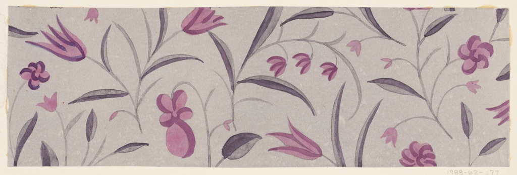 This is a Drawing. It was designed by Heddi Hirsch and made for Wiener Werkstätte. It is dated 1923 and we acquired it in 1988. Its medium is brush and gouache on paper. It is a part of the Drawings, Prints, and Graphic Design department.