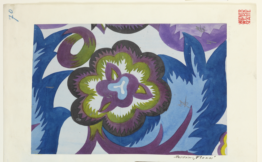 Drawing, Textile Design: Flora; Designed by Leopold Blonder (Austrian, 1893 - 1932); Made for Wiener Werkstätte (Austria); Austria; brush and gouache on paper; 25.9 x 17.3 cm (10 3/16 x 6 13/16 in.); Museum purchase from Smithsonian Collections Acquisition and Decorative Arts Association Acquisition Funds; 1988-62-22