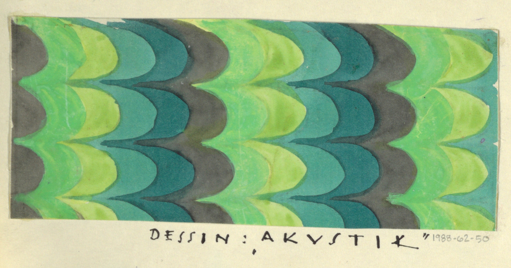 Drawing, Textile Design: Akustik (Acoustic); Made for Wiener Werkstätte (Austria); Austria; brush and gouache on paper; 6.7 x 14.7 cm (2 5/8 x 5 13/16 in.); Museum purchase from Smithsonian Collections Acquisition and Decorative Arts Association Acquisition Funds; 1988-62-50