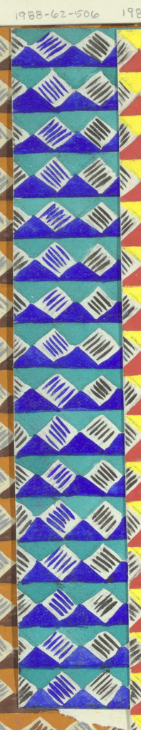 Drawing, Textile Design: Mantua; Made for Wiener Werkstätte (Austria); brush and gouache on paper; 15.9 × 2.5 cm (6 1/4 in. × 1 in.) Mat: 45.7 × 29.5 cm (18 in. × 11 5/8 in.); Museum purchase from Smithsonian Collections Acquisition and Decorative Arts Association Acquisition Funds; 1988-62-506