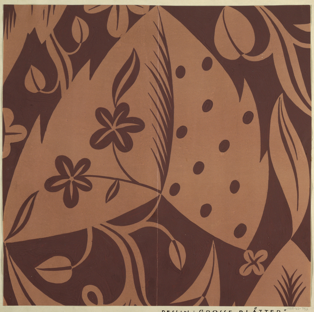 Drawing, Textile Design: Große Blätter (Large Leaves); Made for Wiener Werkstätte (Austria); Austria; brush and gouache on paper; 27.6 x 27.9 cm (10 7/8 x 11 in. ); Museum purchase from Smithsonian Collections Acquisition and Decorative Arts Association Acquisition Funds; 1988-62-752