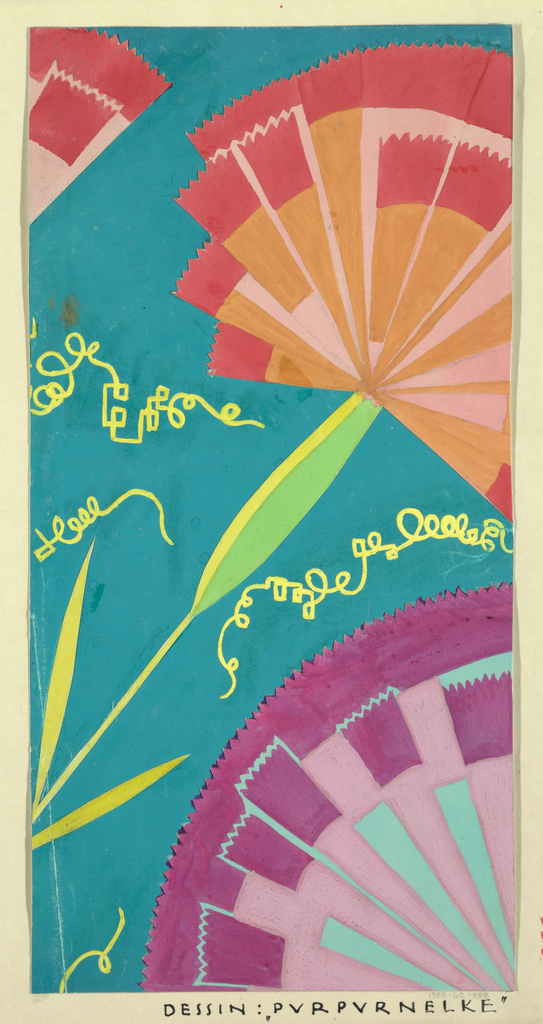 Drawing, Textile Design: Purpurnelke (Purple Pink); Designed by Felice Rix-Ueno (Austrian, 1893–1967, active Japan 1935–1967); Made for Wiener Werkstätte (Austria); Austria; brush and gouache on paper; 29.2 × 14.6 cm (11 1/2 × 5 3/4 in.) Mat: 31.4 × 45.6 cm (12 3/8 × 17 15/16 in.); Museum purchase from Smithsonian Collections Acquisition and Decorative Arts Association Acquisition Funds; 1988-62-888