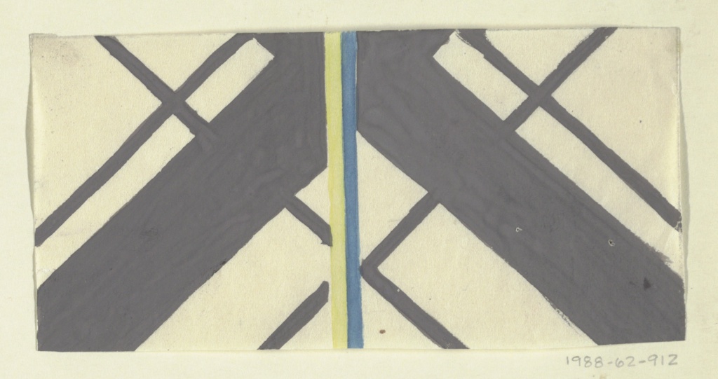 Drawing, Textile Design: Archibald; Designed by Felice Rix-Ueno (Austrian, 1893–1967, active Japan 1935–1967); Made for Wiener Werkstätte (Austria); brush and gouache on paper; 6 × 12.1 cm (2 3/8 × 4 3/4 in.) Mat: 32.4 × 45.1 cm (12 3/4 × 17 3/4 in.); Museum purchase from Smithsonian Collections Acquisition and Decorative Arts Association Acquisition Funds; 1988-62-912