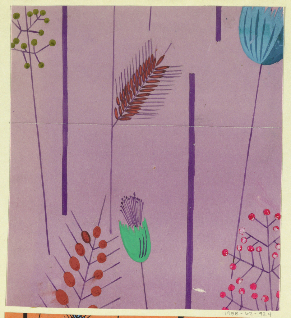 This is a Drawing. It was designed by Felice Rix-Ueno and made for Wiener Werkstätte. It is dated 1922 and we acquired it in 1988. Its medium is brush and gouache on paper. It is a part of the Drawings, Prints, and Graphic Design department.