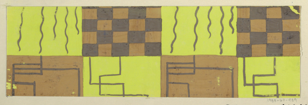 Drawing, Textile Design: Sylvester; Designed by Felice Rix-Ueno (Austrian, 1893–1967, active Japan 1935–1967); Made for Wiener Werkstätte (Austria); brush and gouache on paper; 6.4 × 20.3 cm (2 1/2 in. × 8 in.) Mat: 31.8 × 45.1 cm (12 1/2 × 17 3/4 in.); Museum purchase from Smithsonian Collections Acquisition and Decorative Arts Association Acquisition Funds; 1988-62-939