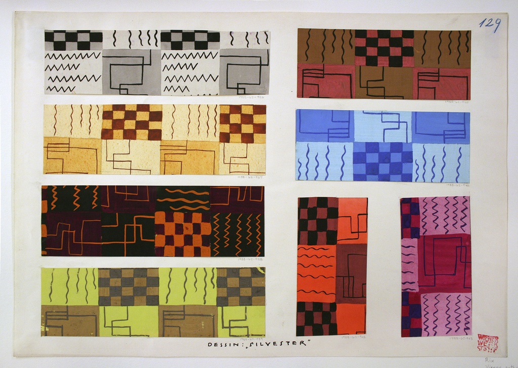 This is a Drawing. It was designed by Felice Rix-Ueno and made for Wiener Werkstätte. It is dated 1922 and we acquired it in 1988. Its medium is brush and gouache on paper. It is a part of the Drawings, Prints, and Graphic Design department.