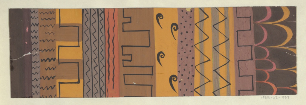 Drawing, Textile Design: Tokio (Tokyo); Designed by Felice Rix-Ueno (Austrian, 1893–1967, active Japan 1935–1967); Made for Wiener Werkstätte (Austria); brush and gouache on paper; 6.4 × 20.6 cm (2 1/2 × 8 1/8 in.) Mat: 31.6 × 45.1 cm (12 7/16 × 17 3/4 in.); Museum purchase from Smithsonian Collections Acquisition and Decorative Arts Association Acquisition Funds; 1988-62-957