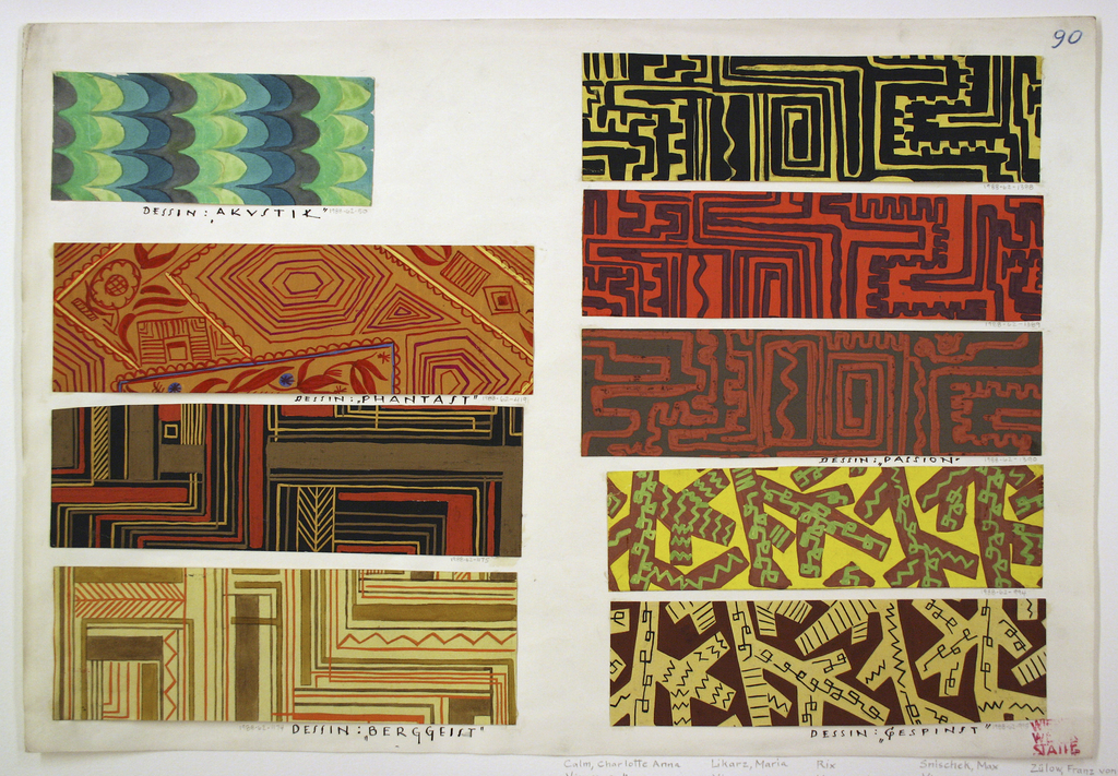 Drawing, Textile Design: Gespinst (Thread); Made for Wiener Werkstätte (Austria); brush and gouache on paper; 5.1 × 18.4 cm (2 in. × 7 1/4 in.) Mat: 31.8 × 45.1 cm (12 1/2 × 17 3/4 in.); Museum purchase from Smithsonian Collections Acquisition and Decorative Arts Association Acquisition Funds; 1988-62-994