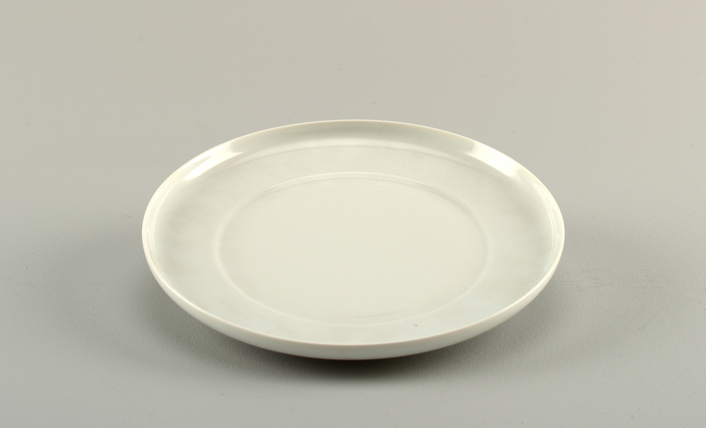 This is a plate. It was designed by Marc Held and produced by Coquet Porcelainier à Limoges. It is dated 1988 and we acquired it in 1989. Its medium is porcelain, glazed. It is a part of the Product Design and Decorative Arts department.