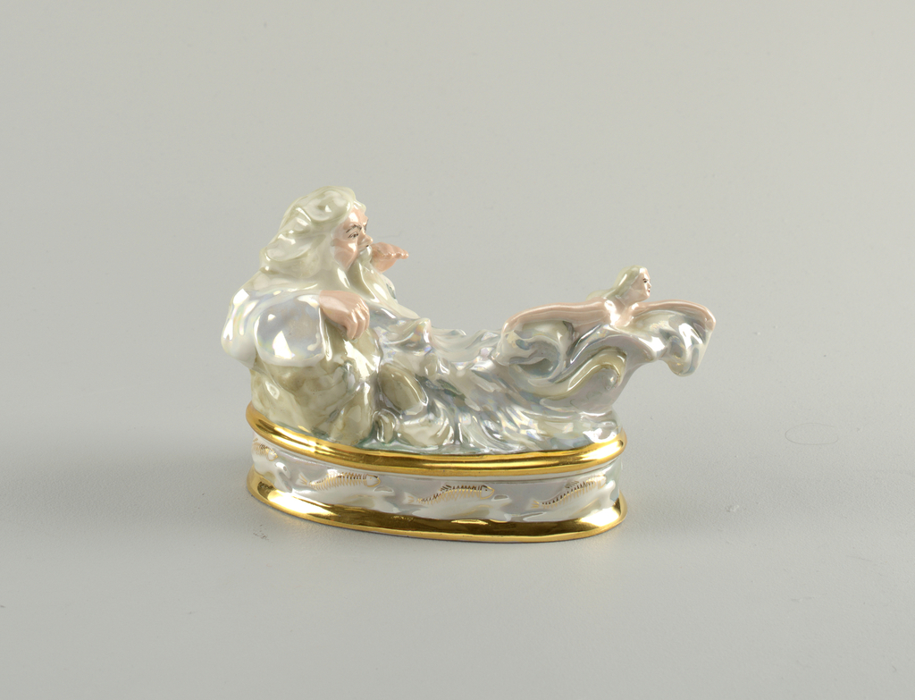 Baikal and Angara Box And Cover; Manufactured by Highta Porcelain Factory; porcelain, enamel, gilding; H: 11.3 cm (4 7/16 in.); The Henry and Ludmilla Shapiro Collection; Partial gift and partial purchase through the Decorative Arts Association Acquisition and Smithsonian Collections Acquisition Program Funds; 1989-41-100-a,b