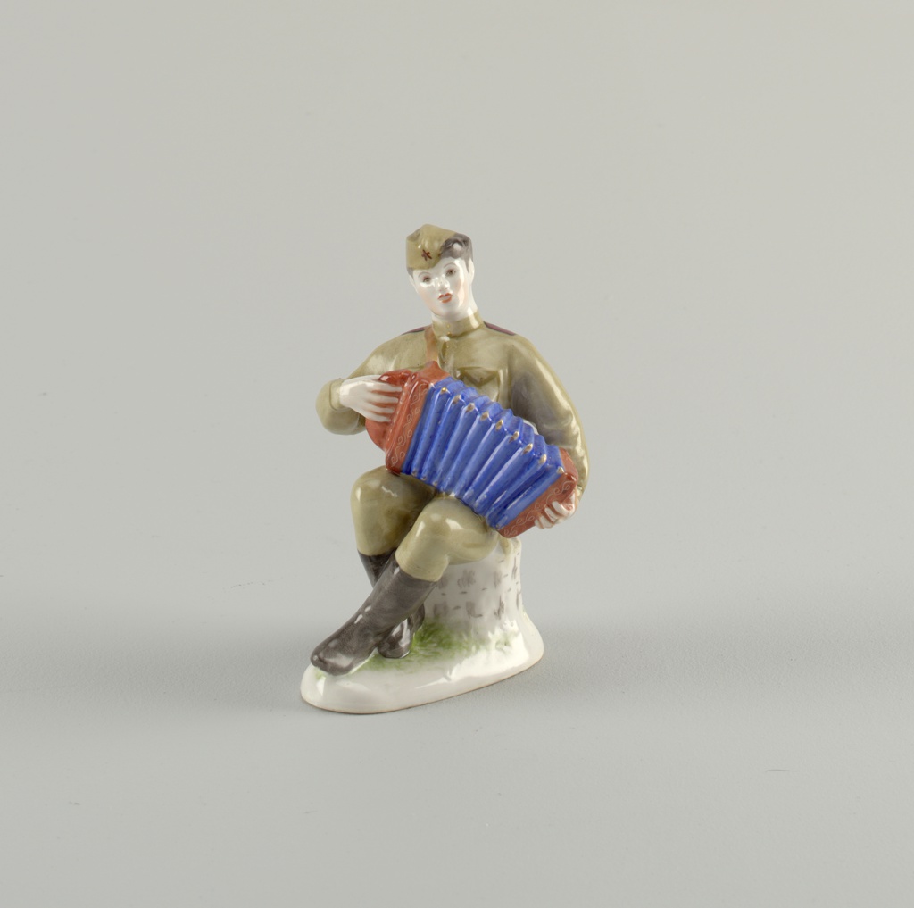 Soldier Playing Accordion Figure; Manufactured by Lomonosov Porcelain Factory (Russia); porcelain, enamel; 13.6 cm (5 3/8 in.); The Henry and Ludmilla Shapiro Collection; Partial gift and partial purchase through the Decorative Arts Association Acquisition and Smithsonian Collections Acquisition Program Funds; 1989-41-198