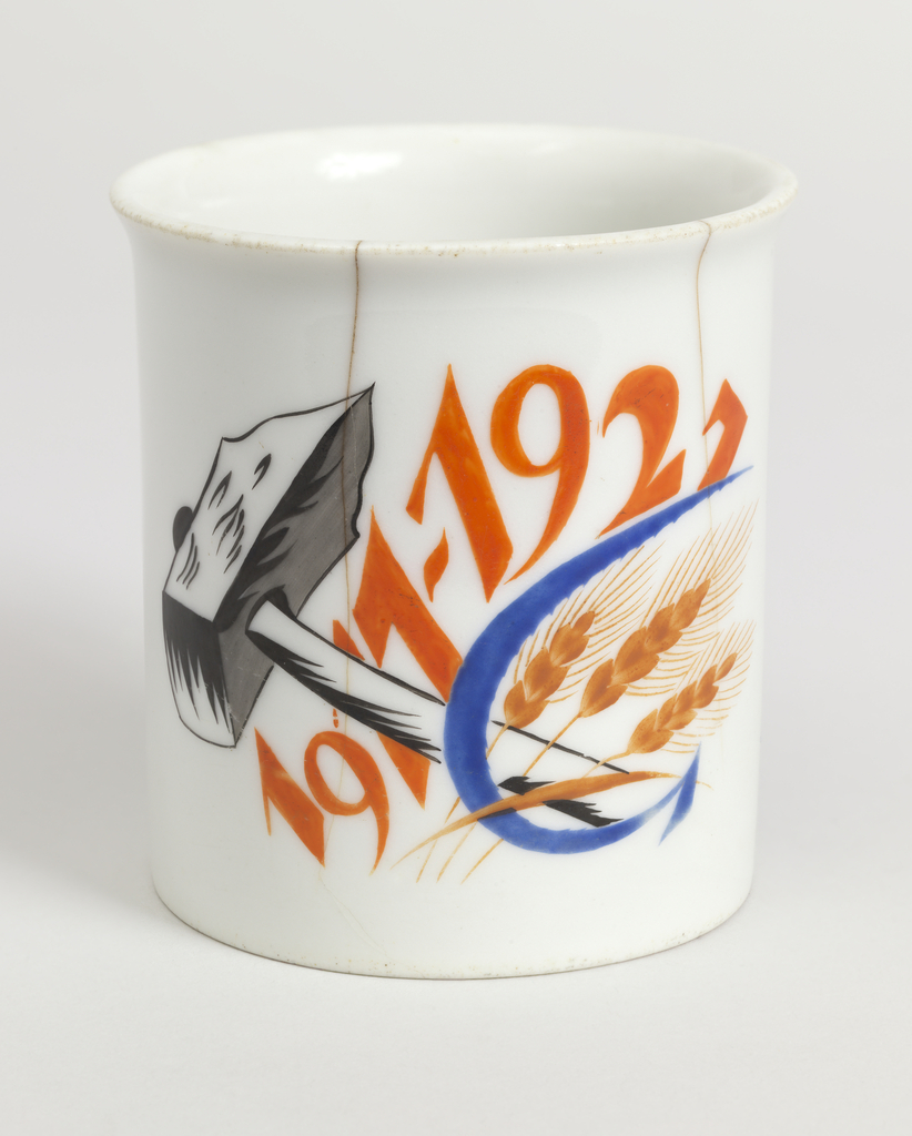 1917-1927 Mug; Manufactured by Lomonosov Porcelain Factory (Russia); porcelain, enamel; H: 9.6 cm (3 3/4 in.); The Henry and Ludmilla Shapiro Collection; Partial gift and partial purchase through the Decorative Arts Association Acquisition and Smithsonian Collections Acquisition Program Funds; 1989-41-72
