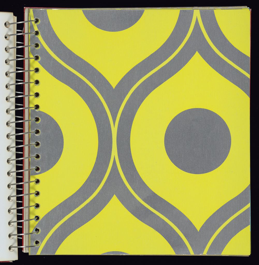 This is a Sample book. It is dated 1970–75 and we acquired it in 1990. Its medium is rotogravure printed, vinyl, foil. It is a part of the Wallcoverings department.