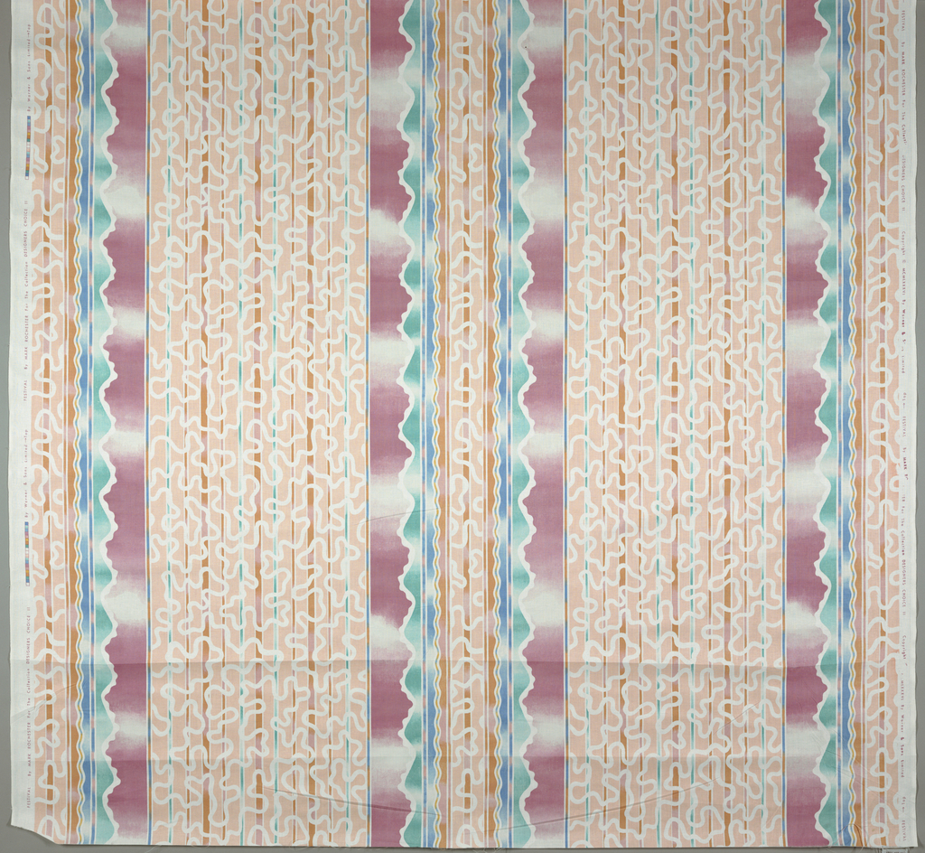 Textile, Festival; Made by Stead McAlpin & Co.; England; Warp: 308cm (121 3/4in.). Weft:144cm (56 3/4) Pattern: Height of repeat. 65cm. (25 1/2in.).; Gift of Warner Fabrics, plc; 1991-103-14
