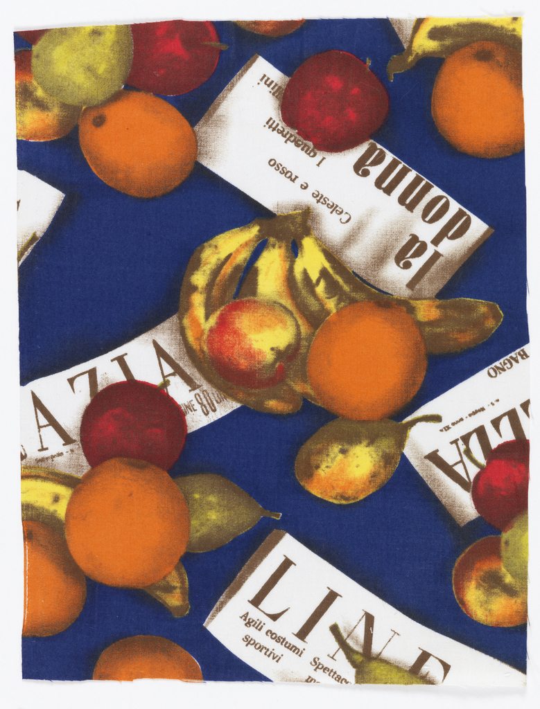 This is a Textile. It was company: Miss Mouse. It is dated 1973–74 and we acquired it in 1991. Its medium is cotton and its technique is roller printed on plain weave foundation. It is a part of the Textiles department.
