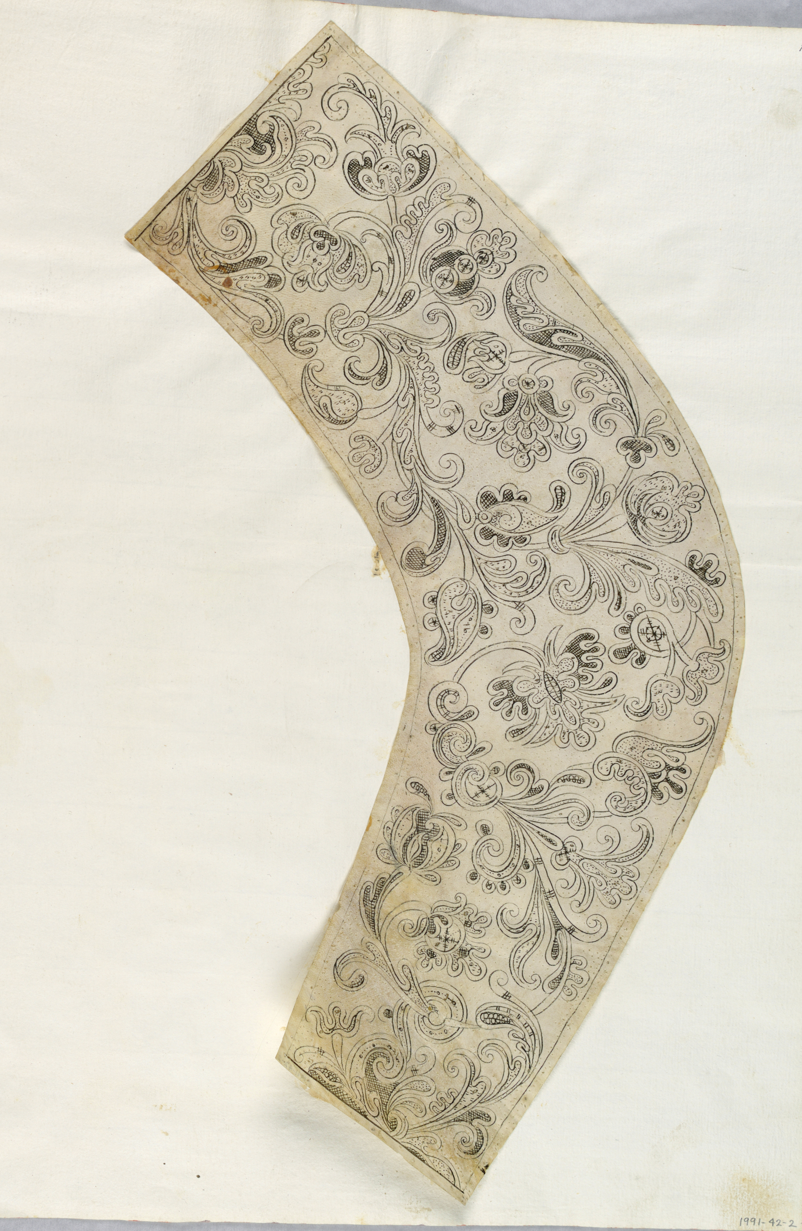 Drawing, Support for the Making of a Woman's Needle Lace Collar; pen,ink,parchment,paper; 49 × 35.5 cm (19 5/16 in. × 14 in.); Museum purchase from Sarah Cooper-Hewitt and Au Panier Fleuri Funds; 1991-42-2