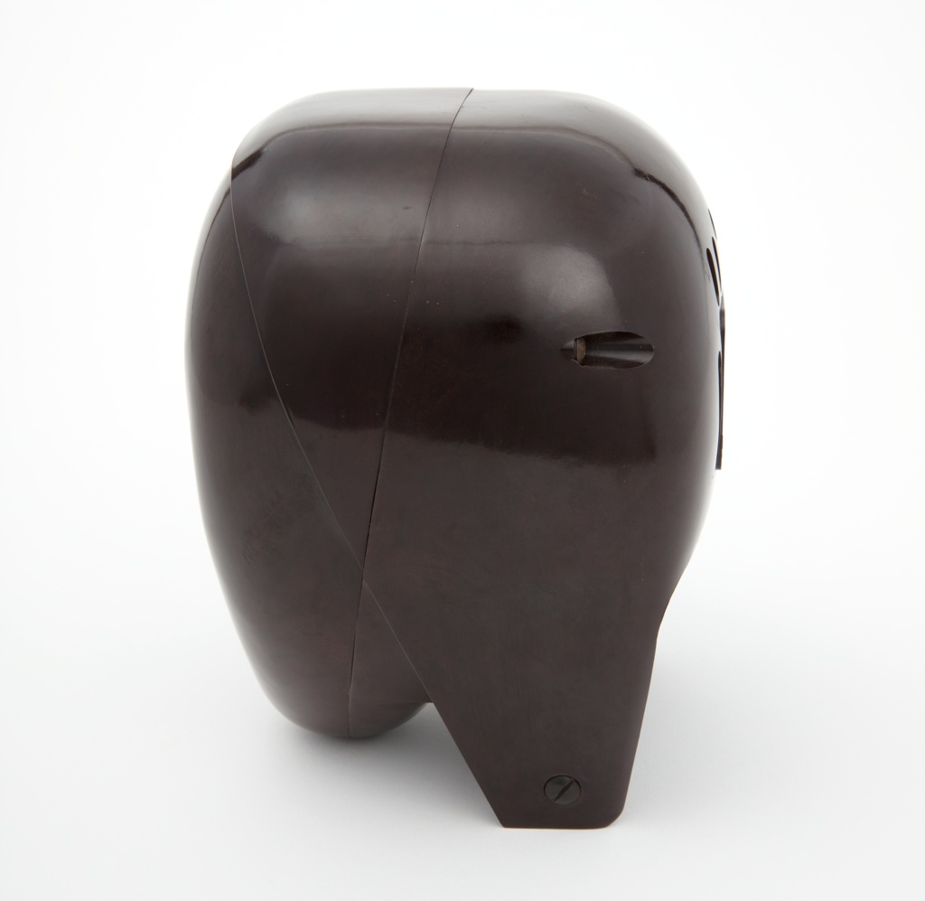 An interesting confluence of design, technology, and utility is embodied by the 'Radio Nurse' a two-part microphone and speaker system conceived as an aid for home or hospital. The idea for the product grew out of the need of E.F. McDonald, Jr., president of the Zenith Radio Corporation, to monitor the nursery of his young daughter. He draws on Zeniths new developments in radio transmitting and receiving capabilities and commissioned the Japanese American sculptor Isamu Noguchi to create a stylish housing for the product. The 'Nurse' component (shown here) was designed as a quasi-human modernist form that could pass as a stylish accent in a contemporary living room, while a plain rectangular 'Guardian Ear' unit could be placed discretely in the room to be monitored.